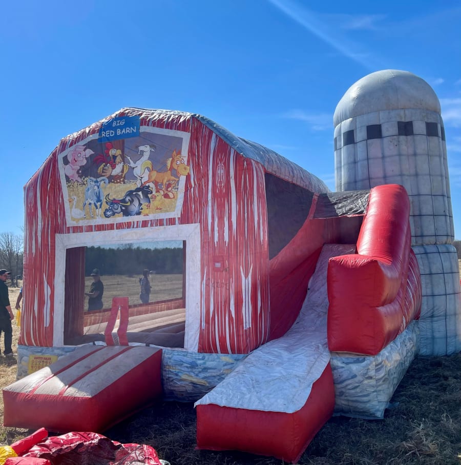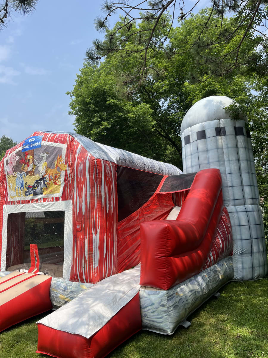 Do you have a special person in your life or maybe even you that have always wanted to be a farmer? Or maybe even check out the inside of a big red barn? Well now is your chance when you book this super fun big red barn bouncy castle! Once you enter inside you will have a large area to bounce then take an adventure up the silo to a little hang out area ta the very top of this very tall bouncy barn. Then slide all the way down the silo on the slide and do it all over again!