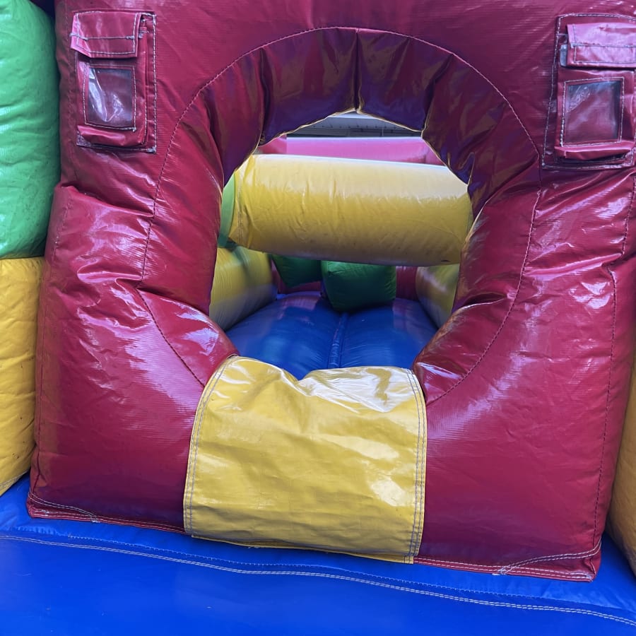 Step into a world of adventure with this bouncy house combo. Start off by navigating through the obstacle course, testing your agility and speed. Climb up the ladder and reach new heights as you make your way to the top of the 20' slide. Feel the rush of adrenaline as you slide down and land safely on the large jump pad.