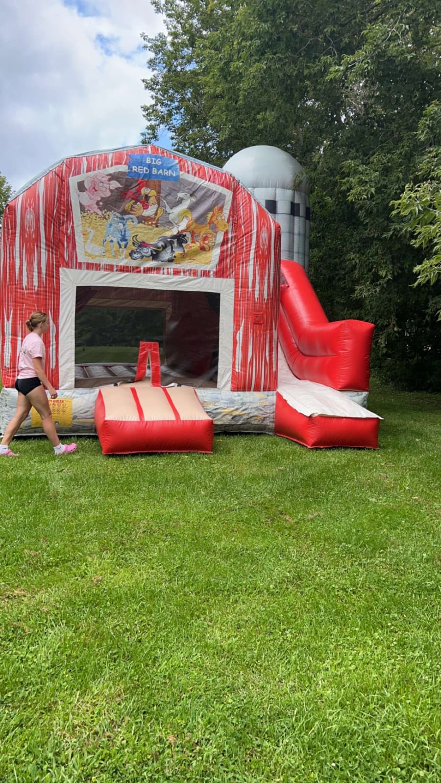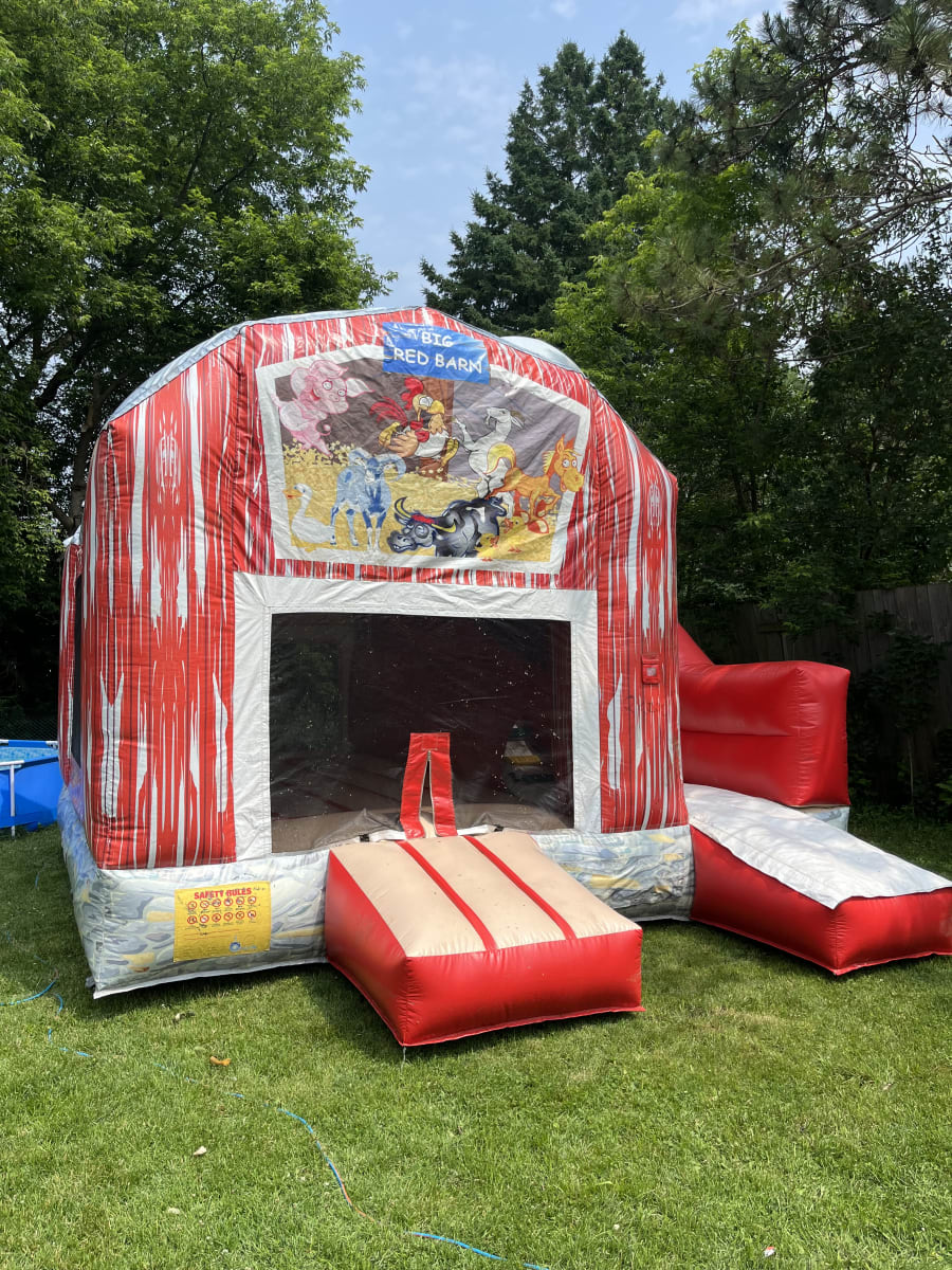 Do you have a special person in your life or maybe even you that have always wanted to be a farmer? Or maybe even check out the inside of a big red barn? Well now is your chance when you book this super fun big red barn bouncy castle! Once you enter inside you will have a large area to bounce then take an adventure up the silo to a little hang out area ta the very top of this very tall bouncy barn. Then slide all the way down the silo on the slide and do it all over again!